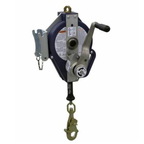 The integrated winch handle folds up to stay out of the workers way when not in use for added safety. - 50 ft. (15.2m) 3/16″ (5mm) galvanized steel cable lifeline