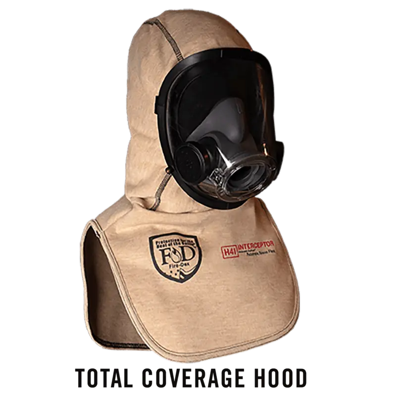 Our total coverage option satisfies more than the minimum NFPA requirement by carrying the particulate blocking technology throughout the entire hood including, the neck, ears, jawline, side, and top of the head, as well as the SCBA interface and bib.