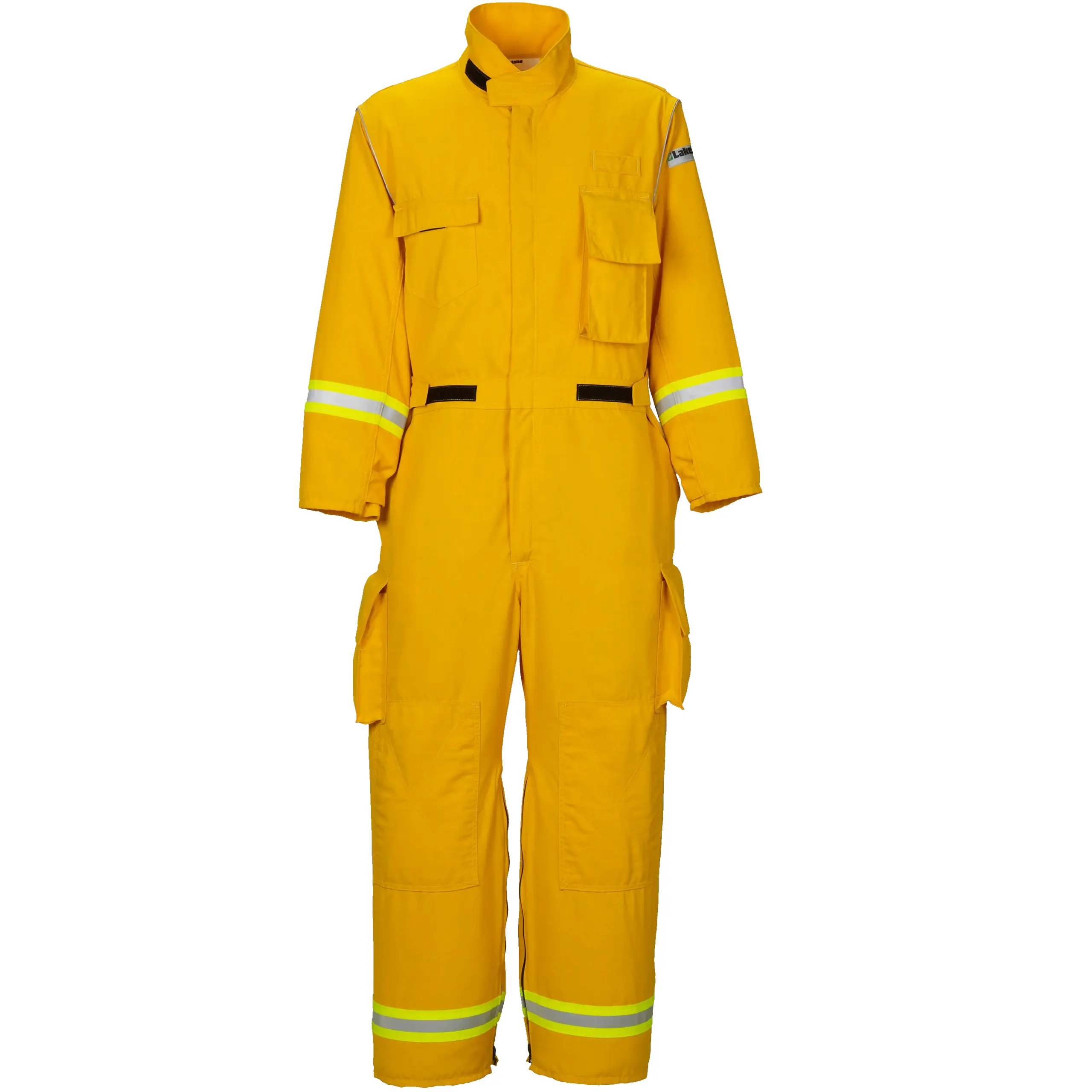 Lakeland’s wildland fire coverall with 3M™ Scotchlite™ 2″ Reflective Material and Lakeland‘s LazerMax Reflective Piping is a great choice for wildland firefighting applications. This wildland coverall is offered with 6 oz yellow Nomex fabric (WLSCVN26) or 9oz Yellow FR Indura (WLSCVN26).
