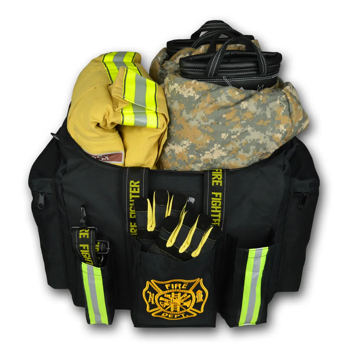 Introducing the Largest True “Step In” Gear Bag in our growing line of public safety bags produced by Lightning X Products. We’ve taken our customer’s feedback over the past 20+ years and put it to work by designing a bag with your interests in mind. A truly unique design! The LXFB20 combines the best features of a step-in turnout gear bag and an operations bag. Great for training personnel or relief captains that move from station to station. Big enough to fit all of your bunker gear including boots in the main compartment! Designed by Firefighters for Firefighters.