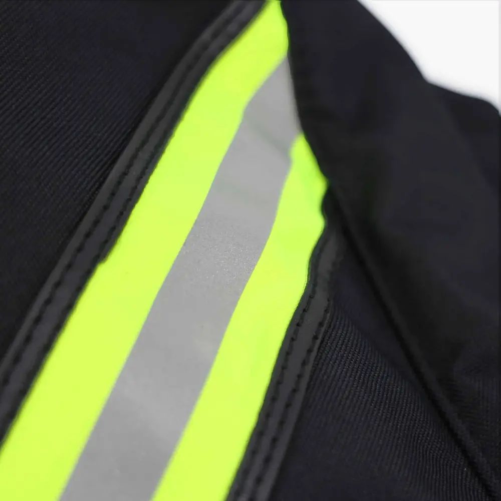 - Lime yellow/silver reflective trim with leather binding reinforcement provides added visibility