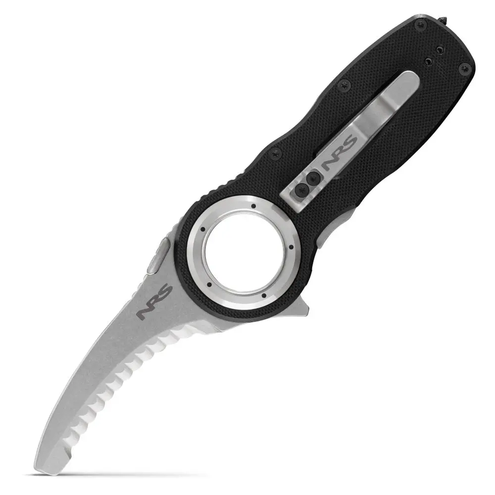Designed for rescue situations, the NRS Pilot Access SAR Knife features a compact, rugged build with a serrated edge and blunt tip for safe, quick cutting.