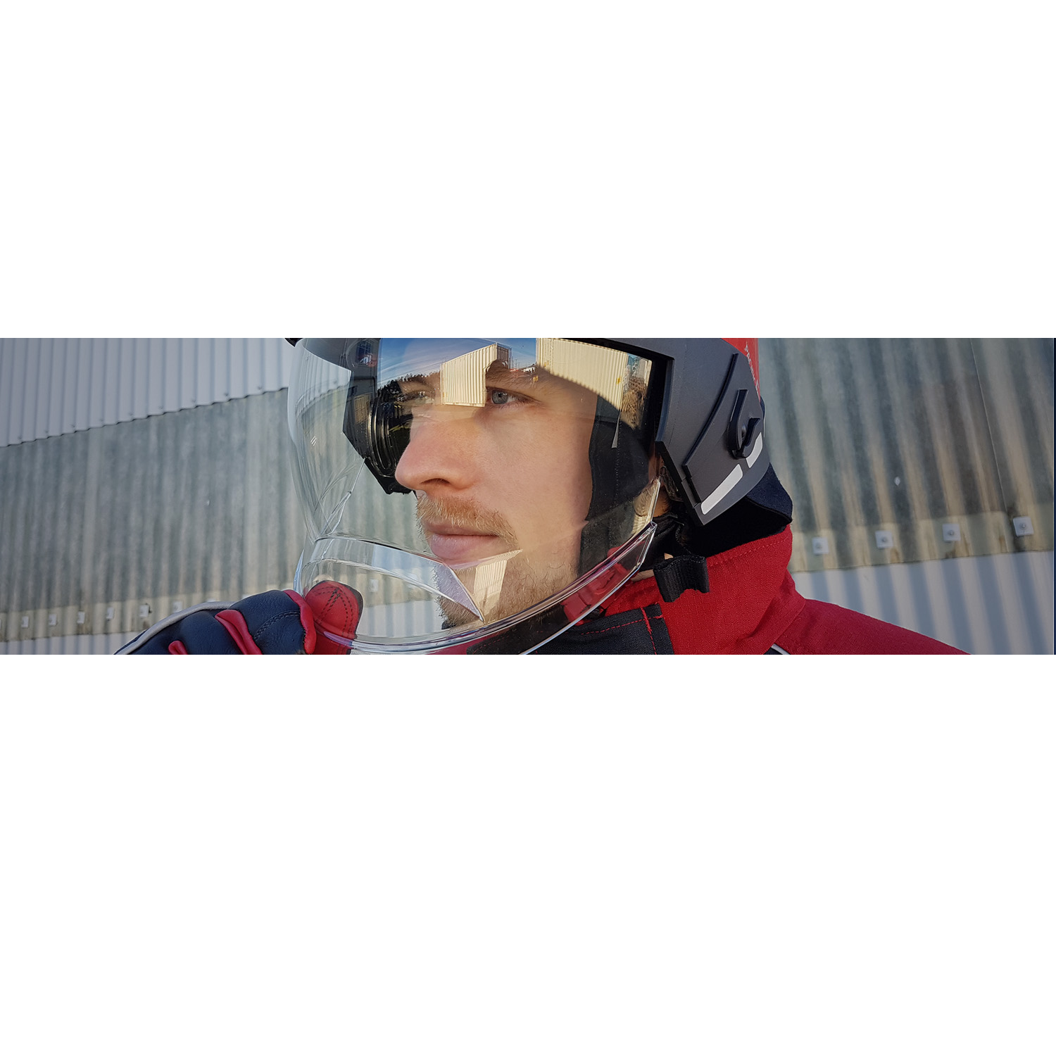 The F15 incorporates Pacific’s latest innovative designs such as the dual pivot face shield. Using an elliptic dual pivot system, the F15’s new full coverage internal face shield can be fully deployed when in use with a breathing apparatus to provide you with an extra layer of safety. The F15 also comes with the One Touch Eye Protector (OTEP)™ for easy, push-activated eye protection at times when full face coverage is not required.