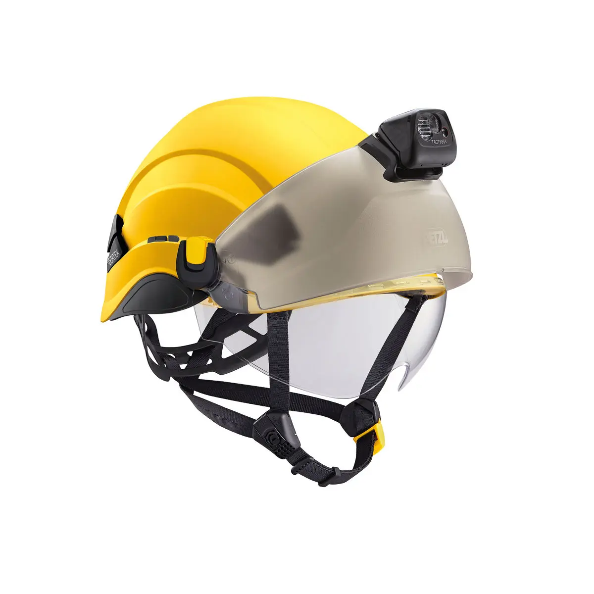 The VERTEX helmet is very comfortable, with a six-point textile suspension as well as CENTERFIT and FLIP and FIT systems, which provide a secure fit on the head. The adjustable-strength chinstrap makes it ideal for both work at height and on the ground. The unventilated outer shell protects against electrical hazards, molten metal splash, and flames. With the ability to integrate a Petzl headlamp, face shield, hearing protection, and multiple accessories, it is an entirely modular helmet, meeting the additional needs of professionals.