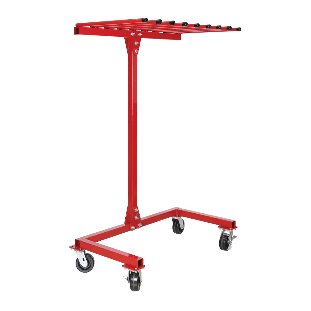- Made from heavy-duty steel with a red powder coat finish