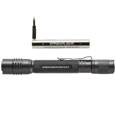 - Includes nylon holster and one (1) Streamlight proprietary protected lithium polymer USB-C rechargeable battery pack; also accepts two (2) AA alkaline batteries