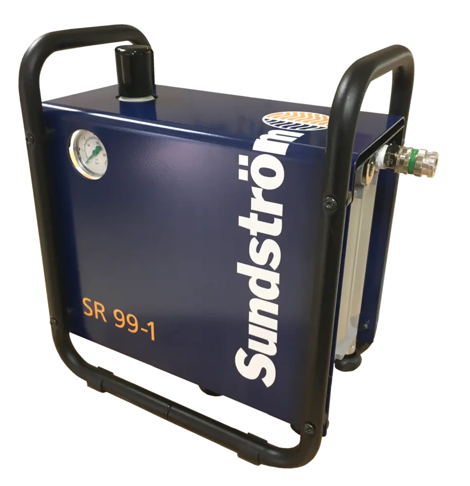 The SR 99-1 compressed air filter is used for producing clean breathing air from ordinary compressed air. The unit consists of a regulator, pre-collector and main filter (SR 292), all of which are mounted in an enclosing steel sheet stand. The unit can be placed on the floor or mounted on a wall. The pre-separator has automatic drainage, separates coarser particles, water and oil. The SR 292 main filter consists of a carbon filter part (500g) , surrounded by two P100 particulate filters. The air is cleaned to remove any remaining particles/gases/vapors/odors. A Y coupling that increases the number of outlets is available as accessory.