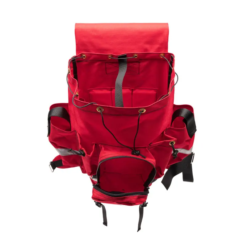 The Top Load Pack is designed as an all purpose pack for wildland firefighters. It offers 2100 cubic inches of storage with a top load drawstring closure, top flap pouch, two fusee pouches, and zippered accessory pouches. Choose from left or right-handed side opening for the fire shelter pouch. The internal pouch allows for organization or a hydration reservoir. Stay hydrated with two canteen pouches and enjoy comfort with padded shoulder straps and waist belt. Customize with accessory pouches on the waist belt and shoulder straps. The backpack accommodates the new generation fire shelter, making it your ultimate ally in the battle against wildfires.